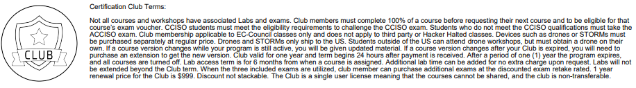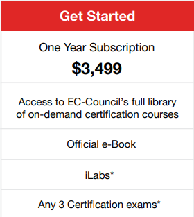 Don’t limit yourself to one class per year by joining the Certification Club. This subscription provides unlimited access to EC-Council on demand certification courses for one year.